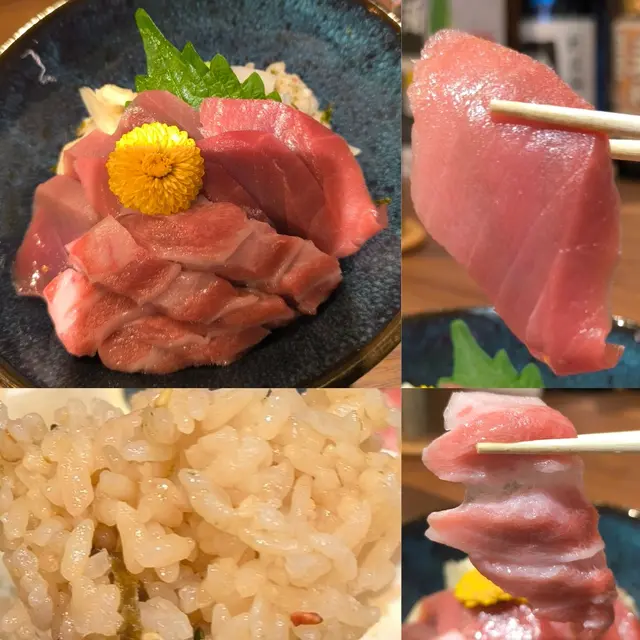 呢碗香蔥吞拿魚腩丼人面吞拿魚新鮮到不得了,吞拿魚腩切得非常厚,食落非常滿足,米飯應該加咗醋,旁邊仲有子薑,非常豐富!