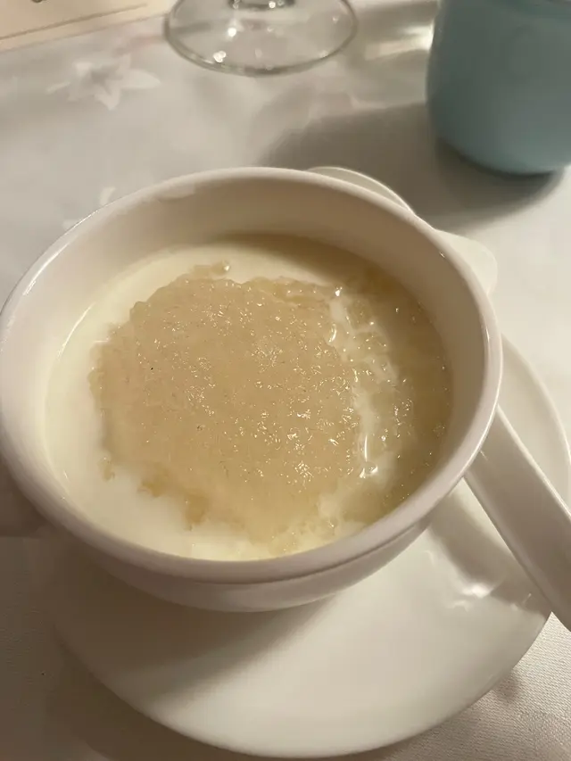 一道豐富滋潤的甜品作為完美的句號,燕窩的口感柔軟,與奶和薑汁的味道融合在一起,味道香甜而不膩。這道甜品也有益於身體健康,燕窩富含膠原蛋白和氨基酸等,美容養顏和補充營養一流😍😍