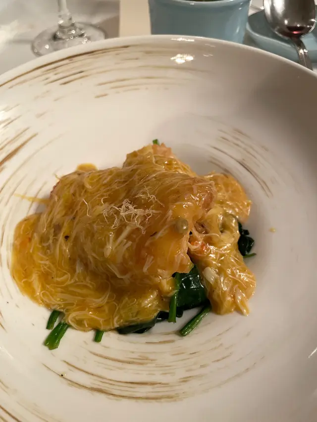 星斑球煎得恰到好處,鮮嫩可口,滿滿的蟹粉香氣與魚肉完美結合,味道十分美味。