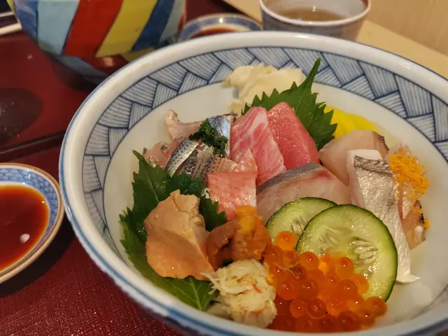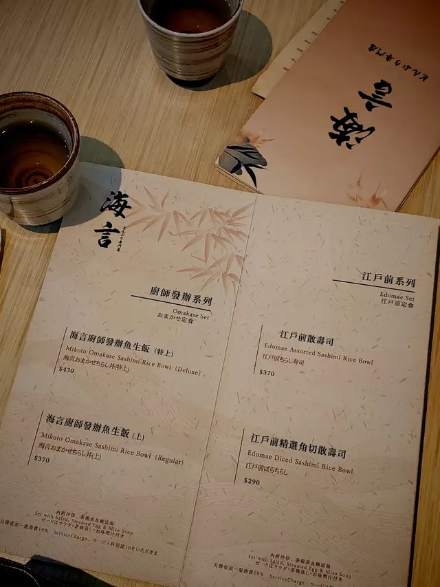 特別要讚個海膽,一啲都唔腥,creamy到不得了;仲有啲三文魚子,咬落卜卜聲,成口都係海洋嘅鮮味!醋飯煮得啱啱好,酸度適中,同刺身超夾。另外跟咗麵豉湯同沙律,個湯都幾有誠意,唔係得死鹹,仲有啲海帶同豆腐~