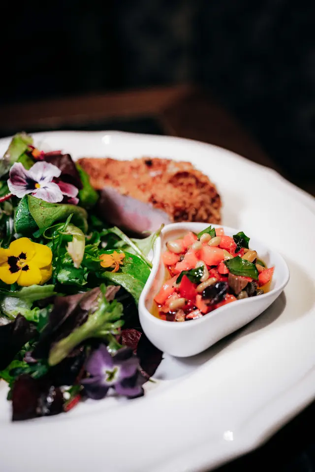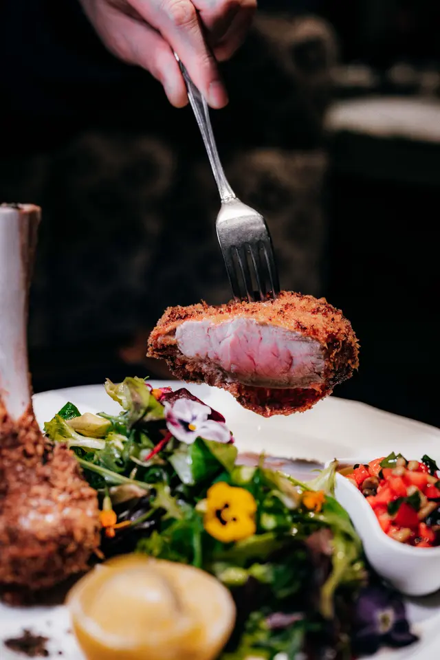 米蘭式小牛排選用荷蘭小牛肉,搭配有機時令沙拉和15年傳統香醋。米蘭色的炸法講求超薄的那層炸衣,完全不帶膩感。牛排外酥內嫩,沙拉的清新與香醋的酸甜平衡了牛排的油膩感。