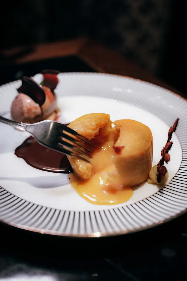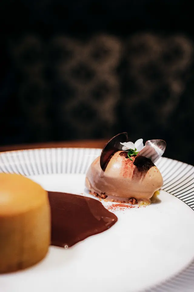 結尾的甜點有這款85%黑朱古力醬和咖啡雪糕,栗子的香甜與巧克力的濃郁完美結合,咖啡冰淇淋則為整道甜點增添了一絲清新的苦味。