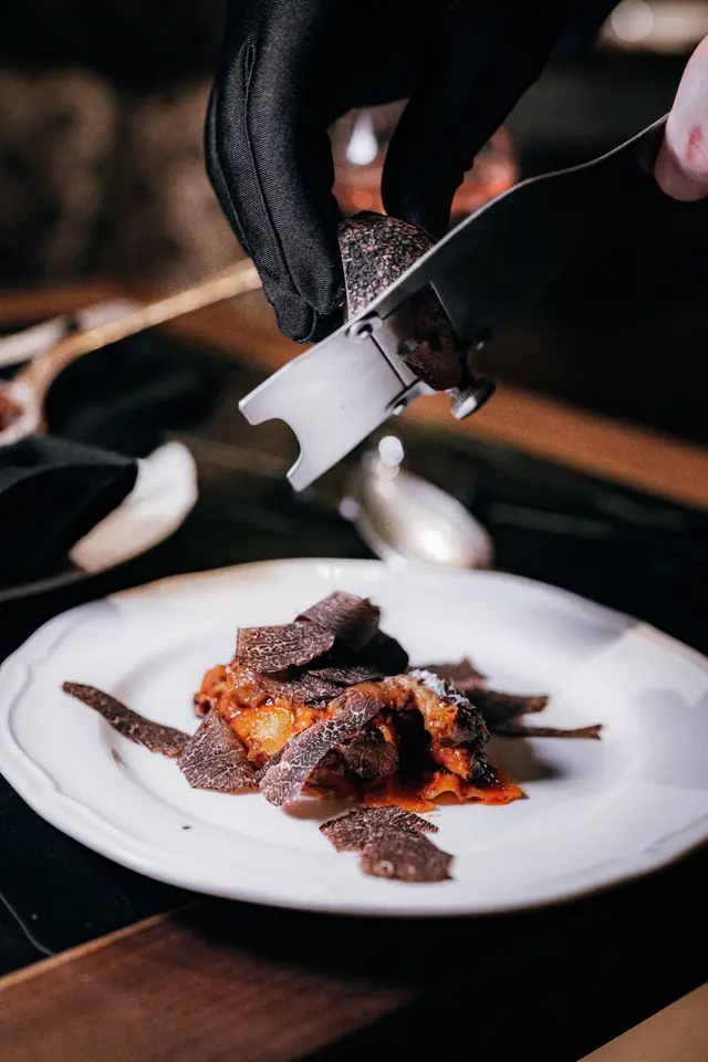 意大利千層麵選用了和牛臉頰肉、牛肝菌和巴馬臣芝士醬,加上席前即刨原粒黑松露,相當矜貴!和牛的柔嫩與牛肝菌的香氣完美融合,黑松露薄片的濃郁則讓整道菜更加豐富。