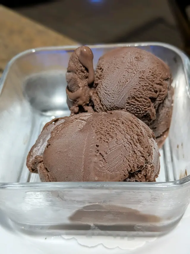 兩球黑朱古力雪糕,濃郁醇厚,不甜回甘。