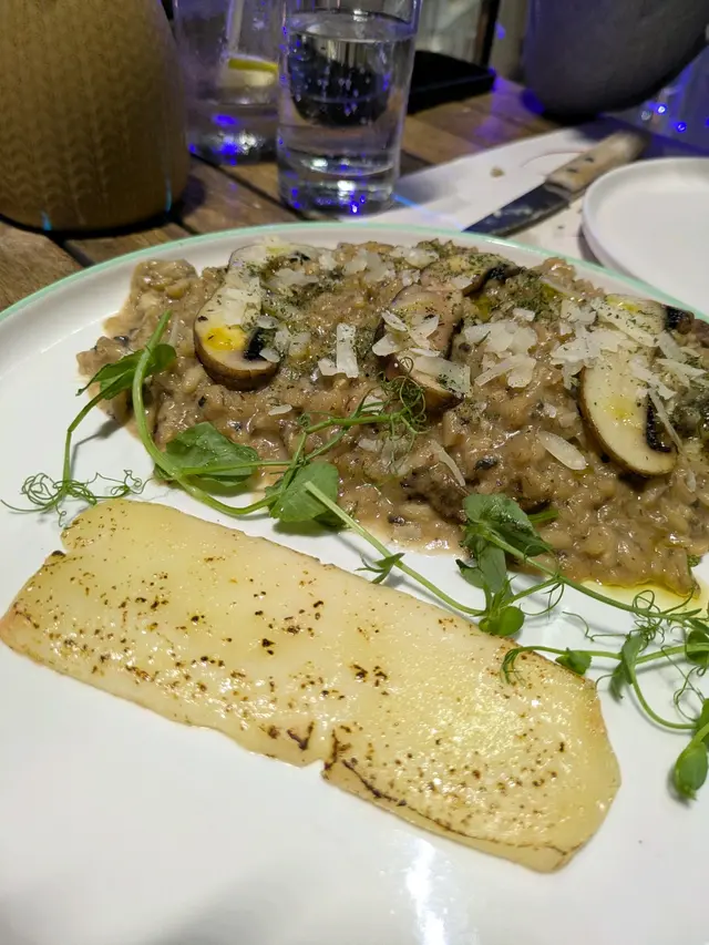 每一口都充滿了牛肝菌、波多日羅和白蘑菇的香氣!黑松露的加入更令香氣層層疊加,與塔美吉奧醬的濃滑完美融合,旁邊既燒芝士為意大利飯更添濃郁。