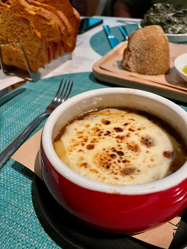 🍽️傳統法式洋蔥湯 (French Onion Soup): 必點!燒芝士蓋厚實,湯底濃郁香甜,加入波本洋蔥忌廉,口感更creamy,暖胃又滿足。