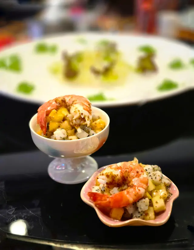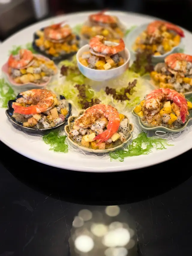 猶如八星伴月的鮮蝦芥末芒果沙律 HK$788,與小時候大堆頭的芒果大蝦沙律造型完全不一樣,食味更有煥然一新的感受!