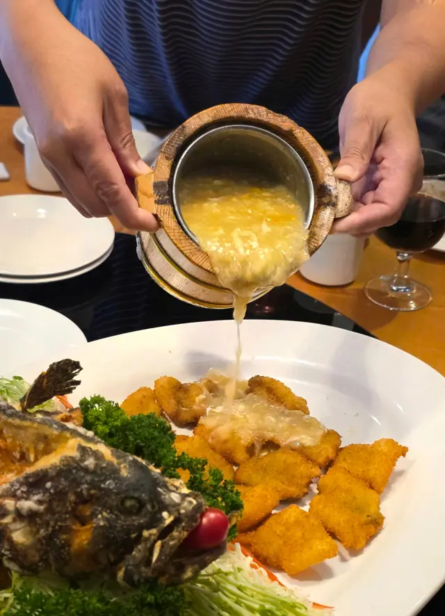 小時候,大人生怕小朋友啃魚骨,於是啖啖肉兼細甜的粟火斑塊,便變成了小孩的專吃魚菜式,可是長大以後不怎麼去碰!這道龍吐珠粟米炸斑塊 HK$1,080,不單勾起兒時回憶,嚐後更覺它是大人也願意去碰的粟米斑塊!