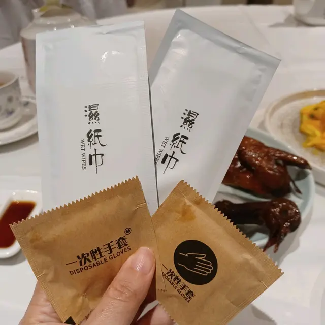 招牌脆乳鴿的鴿肉肥美嫩口有肉汁,經過特殊醃製後,外皮脆焦,餐廳還準備了手套和濕紙巾,貼心周到。