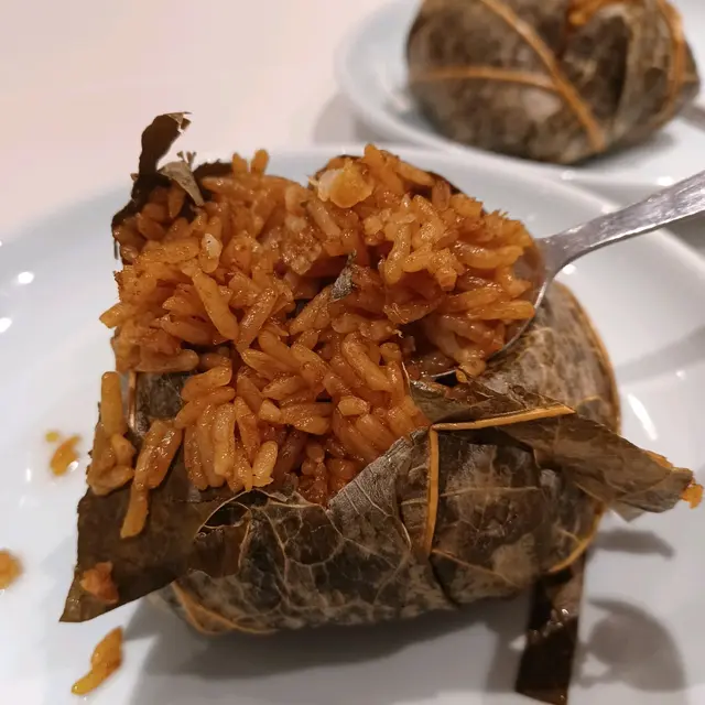 迷李荷葉飯香氣四溢,米飯粒粒分明。