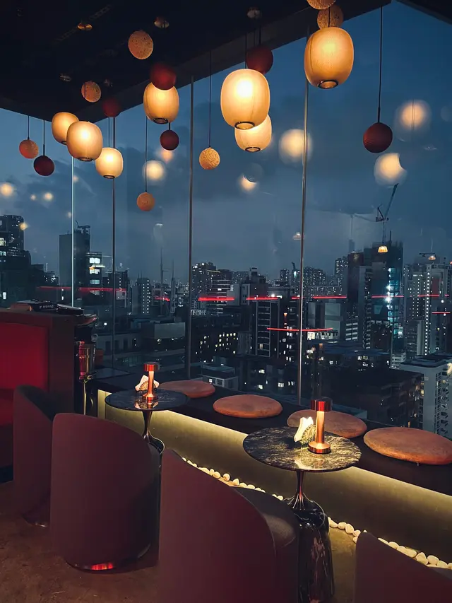 紅黑配色設計時尚有格調,戶外位置景觀開揚,入夜後璀燦迷人夜景盡入眼簾,在如此醉人景色下品酒,徘徊在微醺與清醒之間,夢幻唯美的酒吧酒藏齊全多樣,在昏黃柔和的燈光映照下,猶如被浪漫迷醉氛圍包圍,