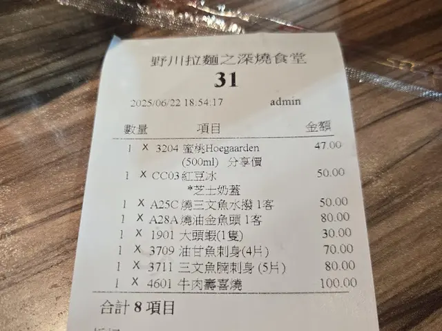 以價位而言,串燒類表現出色且選擇多元,尤其海鮮燒物水準高超。避開鍋物料理,專攻油甘魚頭、燒鰻魚、雞皮蝦等招牌串燒,配杯冰涼生啤,便是完美的宵夜體驗。整體仍值得推薦,唯望廚房加強刺身處理工序。