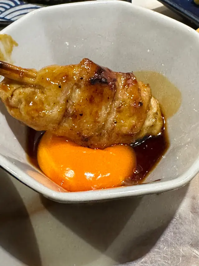 雞肉棒烤制後香氣四溢,日本醬油蛋汁是靈魂