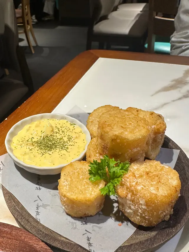 炸准山配蛋黃醬,口感充滿層次,蛋黃醬加入蛋粒,好喜歡這個醬