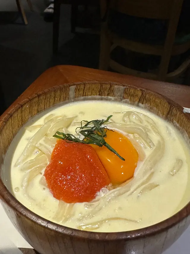 忌廉湯汁質地creamy,味道偏重奶味,烏冬好掛汁