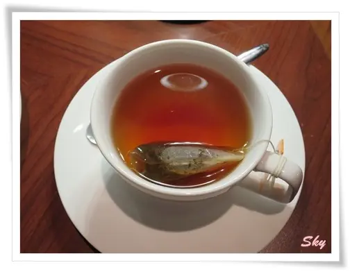 一口氣食了兩款味道偏濃的主菜後, 當然要食番一杯熱茶中和一下, 我選了Peach Tea.