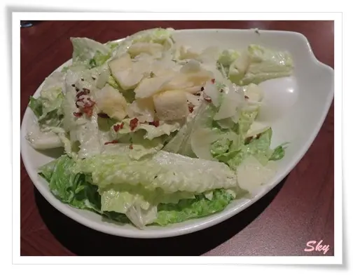 沙律面放了芝士, 麵包粒和煙肉碎, 但煙肉碎太少.