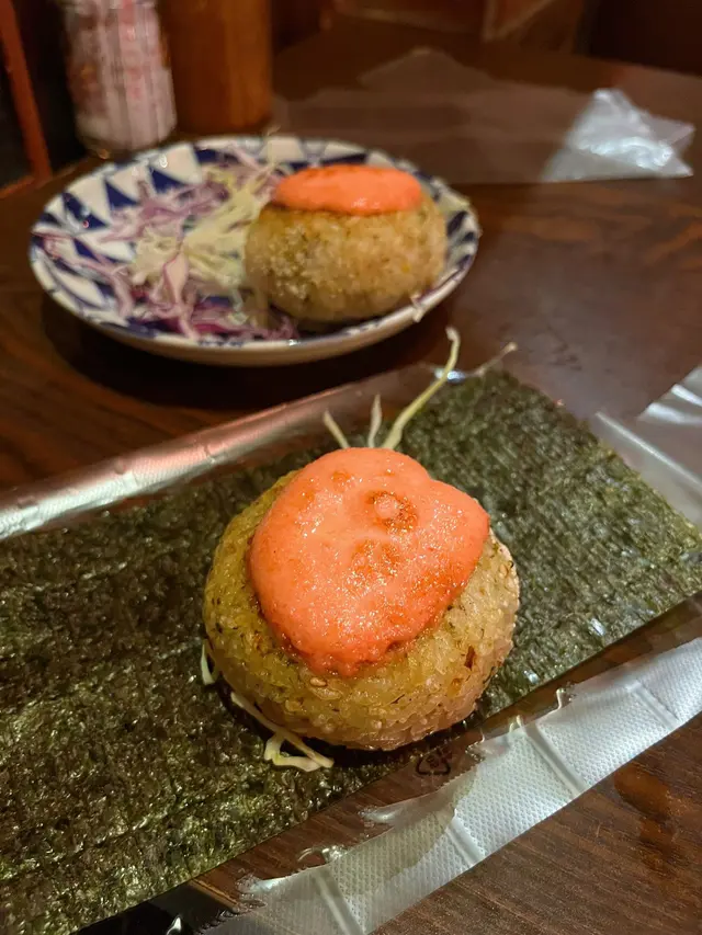 明太子日式飯團都相當特別,好少見會外加一塊紫菜比客自己包。不過紫菜唔算好脆,但飯團本身表面燒得好脆口,而個飯本身都已經有調味,就咁食都唔會覺得乾。上面再配上明太子沙律醬,令成個飯團生色不少。不過因為系鋪上面,所以唔系好均勻,會有啲食到沙律醬有啲食唔到。