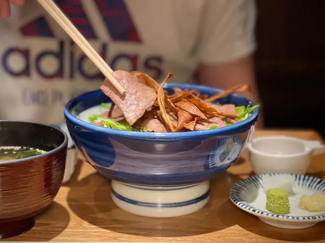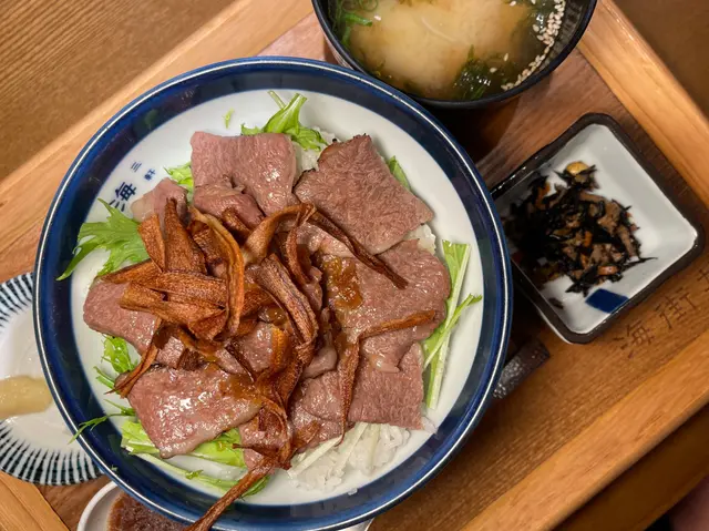 朋友一向都鍾意食牛,所以見到有和牛丼我都知道佢一定會揀㗎喇,成個set既presentation 都好精緻,牛肉既份量都唔少,面頭仲放左一啲炸牛蒡添,黑毛和牛入口軟滑,油脂分布平均,點少少wasabi可以幫助減輕油膩感