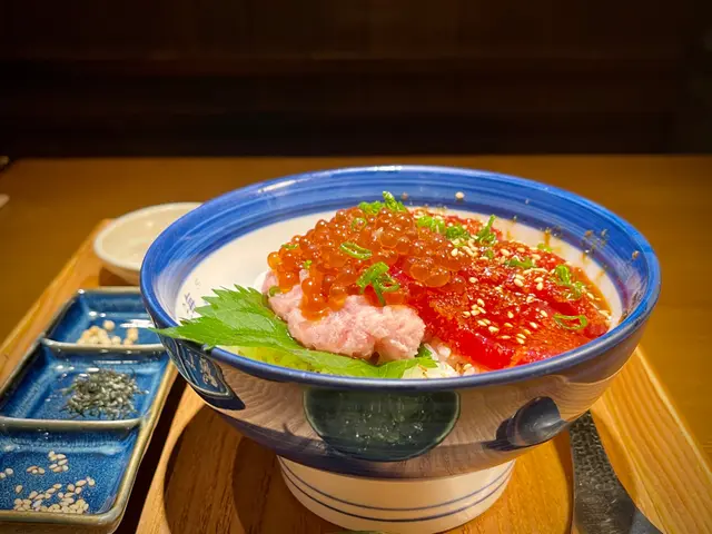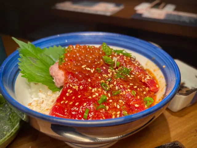 而我就揀咗餐廳推介嘅醬汁吞拿魚丼,呢一款丼飯相對嚟講較濃味,入面有醬油漬過嘅吞拿魚赤身、三文魚子同埋吞拿魚蓉,整體嚟講食材都比較多,食晒啲飯都未食得晒啲餸😂真材實料呀,我個人覺得佢個醬油漬吞拿魚赤身有啲太辣,不過的確幾惹味,同埋佢經過處理後完全食唔到嗰陣赤身獨有既血腥味☺️而佢個三文魚子鹹香味十足,送飯食一流👍🏻餐廳另外有提供到壽司醋啫喱比我mix落啲飯度食,可以中和個油膩感之餘仲更加帶出到魚生既鮮味,呢個配搭確實係有驚喜
