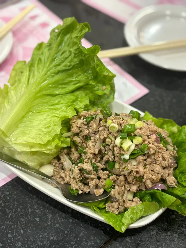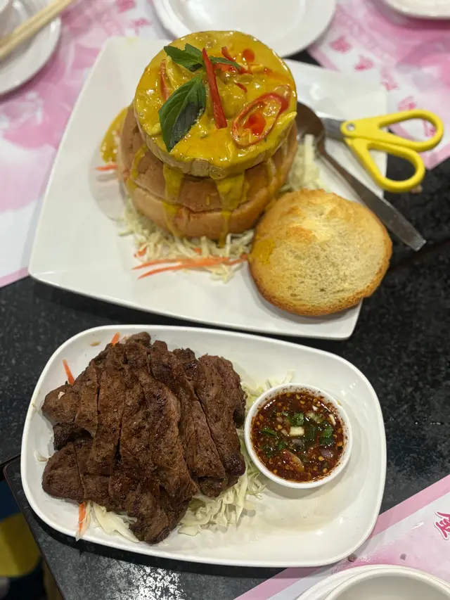 九龍城免加一抵食泰菜,正! sunnylauu等級42025-11-0668 瀏覽 關注 30年老字號依然維持質素,為街坊提供平靚正泰國菜,裝修確實,但坐得舒服,有家庭小店感覺,餐點非常多元化泰式生菜包 $88 豬肉碎滿滿肉汁微微辣,配上爽脆清甜生菜好開胃泰式燒牛肉 $128 兩大塊牛肉份量十足,剪成條狀,每一條都粉紅色肉質粉嫩多汁,有濃郁黑椒調味,更突顯牛肉鮮味大圓法包椰皇咖喱雞 $178 以椰皇裝住咖喱汁,倒落法包時候好有儀式感,最驚喜係咖喱入面有椰子肉,清甜同時口感味道更有層次龍眼冰 $32 龍眼多到數唔晒,唔會太甜。青檸梳打 $32 好清爽,配濃味泰菜好夾113以上食評乃用戶個人意見 , 並不代表OpenRice之觀點。讚好分享九龍城免加一抵食泰菜,正! 金蘭花泰國菜館 https://s.openrice.com/QrbT0w1LV00檢舉 張貼 評分4味道4環境5服務5衛生5抵食用餐途徑堂食
