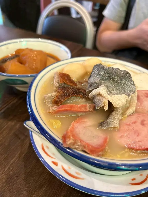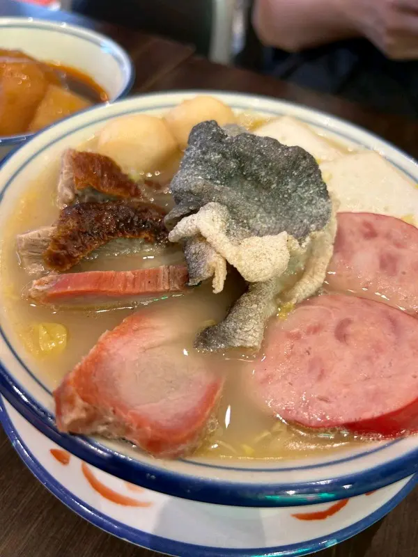 我哋兩個點晒所有我哋最鍾意食嘅港式小食🫡 男朋友點咗佢哋嘅signature菜式 大小姐艇仔粉 超級足料湯底濃 無論係佢哋嘅魚蛋魚片定係紅腸都好彈牙好有口感 而叉燒魚皮都好好食 終於可以唔使專登搭去鴨脷洲都食到正宗嘅艇仔粉啦✌🏻✌🏻✌🏻