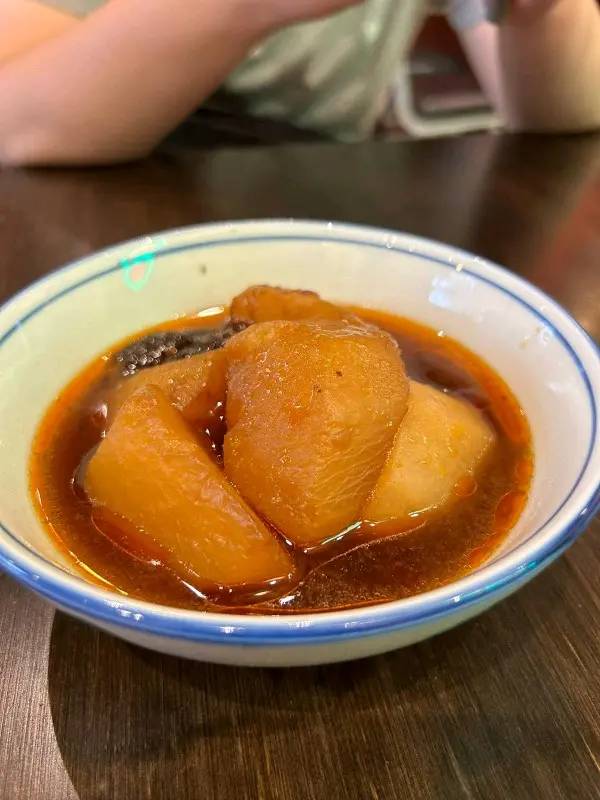 而我就點咗好多唔同嘅小食,炆蘿蔔我覺得係最考驗嘅~ 超級軟腍 有一種入口即溶嘅感覺😋 配埋少少甜醬食真係一流 仲要大力推薦佢哋嘅雞翼尖 我係超級鍾意食雞翼尖 (最後仲打包咗一份返屋企 可以自己叮翻熱嚟食) 佢嘅辣度好足夠 重點係佢超級入味 係每隻雞翼尖都係辣嘅 嗰種感覺真係好正🙌🏻