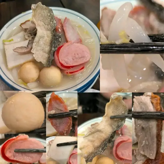 1.大小姐艇仔粉(燒鴨、叉燒、魚片、魚蛋、紅腸、炸魚皮、娃娃菜)$58(6/10)