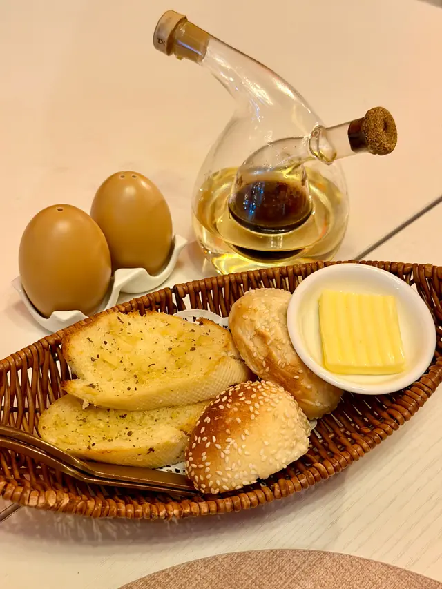 看似簡單卻最考功夫,意粉蒜香撲鼻,蒜味十足,麵條彈牙不黏口。