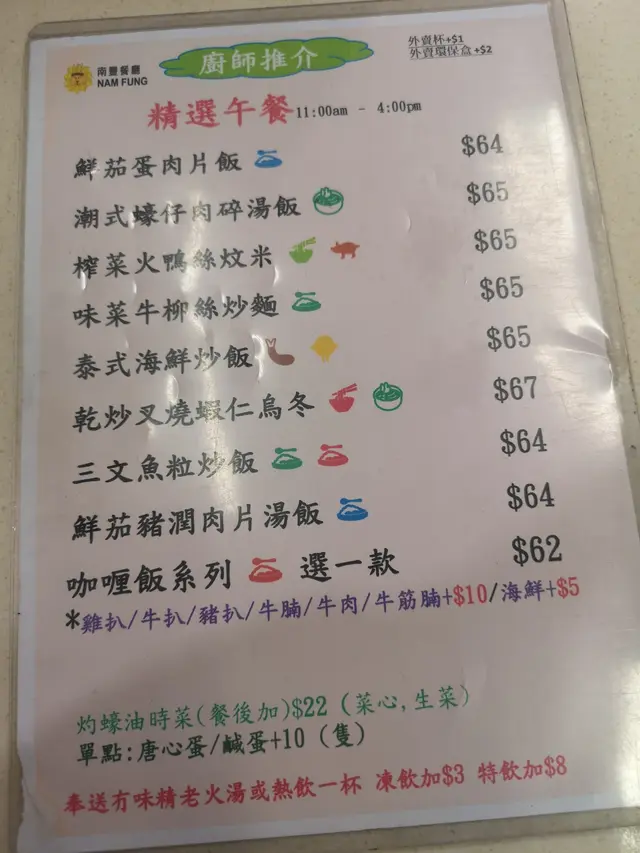南豐餐廳:九龍灣宏光道80號麗晶商場地下G1