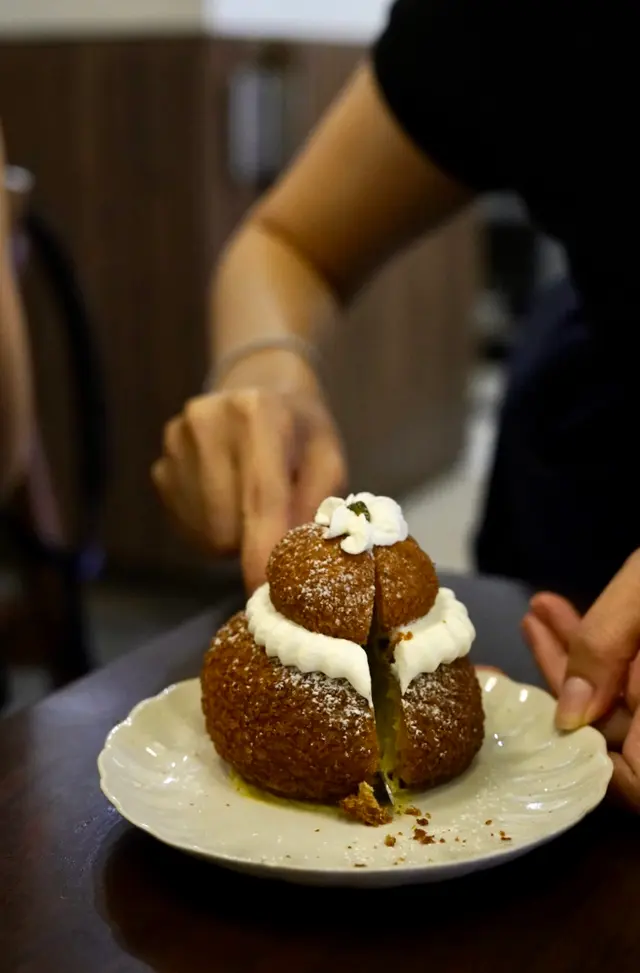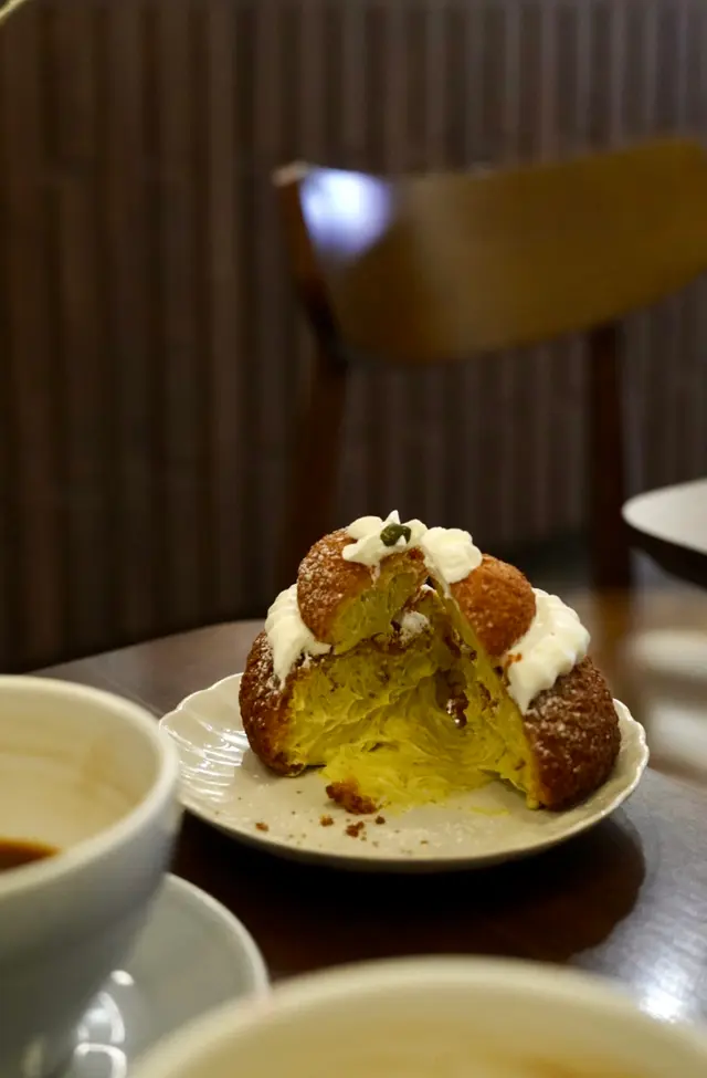 泡芙皮轻盈松脆,填着满满的开心果奶油。香甜浓郁的坚果香气顺着冰冰凉凉的细腻口感在味蕾一路游走,从回味绕上鼻息。