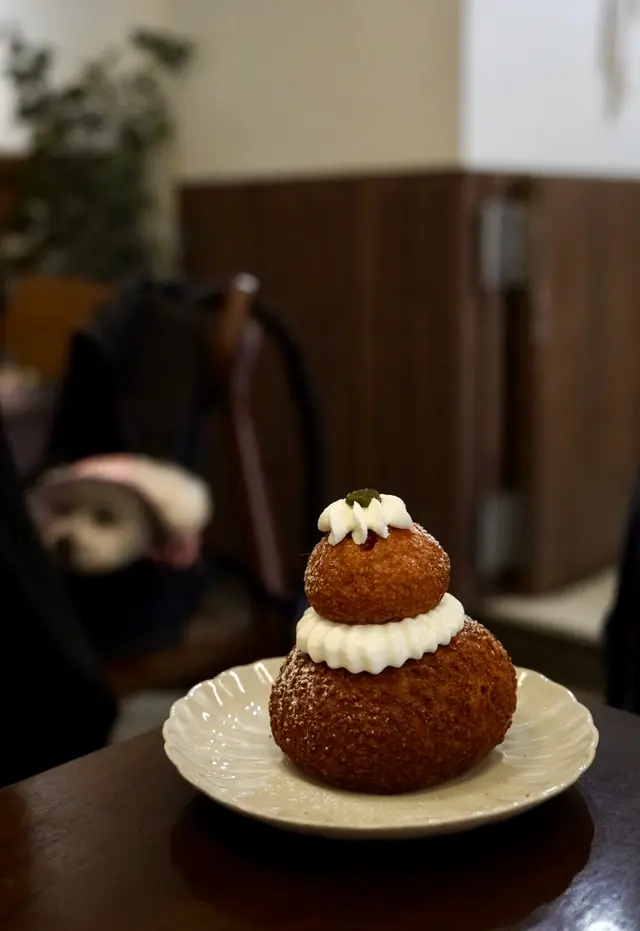 做修女泡芙的店还蛮少见的,于是放弃了同样为当家甜点的黑芝麻麻糬巴斯克。
