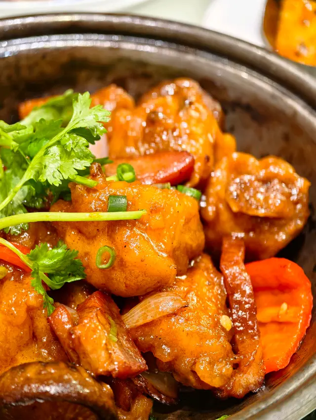 雞件經過煎香,吃起來特別焦嫩,而且大大件的,肉特別多,醬汁鹹香帶點甜,更突出肉香。而且還特別加了有叉燒,與雞肉更相比更能吃出兩個不同的口感。
