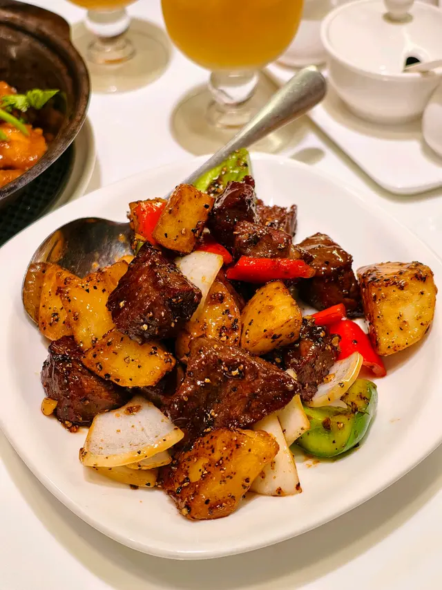 賣想真的挺不錯的,看起來閃閃發光的,原因就是加了很多的蜜糖,每件薯仔和牛柳粒都包裹上大量的黑椒和蜜糖,再煎香煎脆,吃起來外脆內軟的,濃濃的黑椒味,更有蜜糖的香甜,牛柳嫩滑。