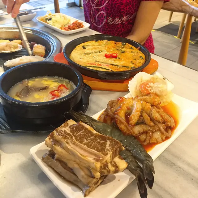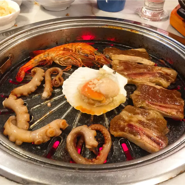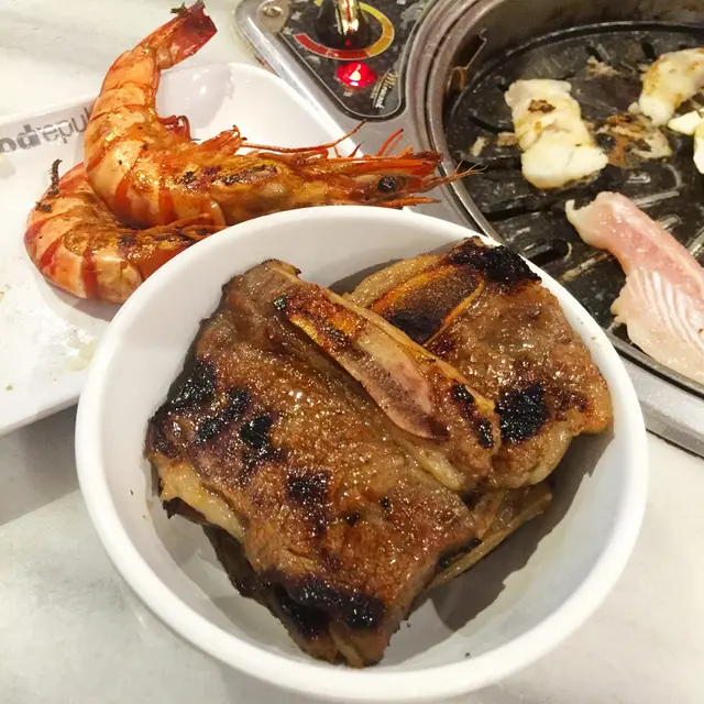 除左可以自助燒烤放題外,仲可以食到韓牛牛骨湯/傳統石頭飯,特選燒烤拼盤 (醃牛仔骨、辣八爪魚、大虎蝦、扇貝),特式飲品兩杯同2款前菜