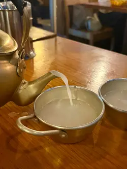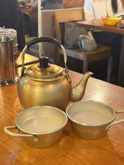 餐廳有超級多款不同馬格利酒揀😝 我地就揀左招牌Mak so sa🥸 酒係用壺裝,再用細碗仔裝住飲😎勁有儀式感🤩 雪碧氣泡加清爽燒酒,再加馬格利酒😋 飲落甜甜地完全唔覺有酒,超級容易入口🤭 唔覺唔覺就飲曬😆