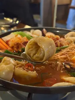 天氣凍嘅救命燉湯🙌🏻 泡菜味超濃,餃子大大隻🥟 仲有蘿蔔、翠玉瓜、洋蔥、牛肉、年糕,好足料!材料索曬泡菜湯嘅味👍🏻 有微辣夠惹味🥵 食完成個人都暖晒🔥