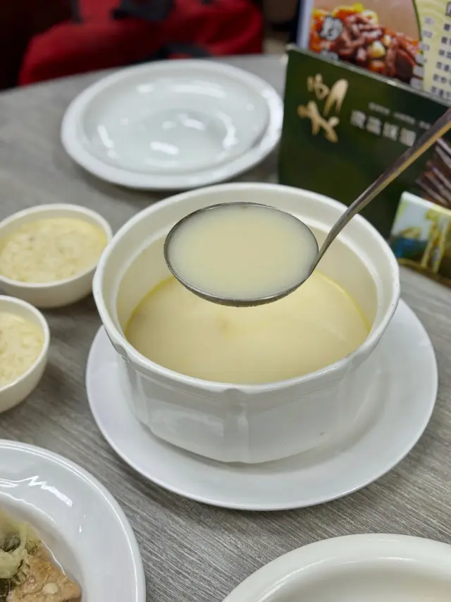 二選一,選擇了杏汁豬肺湯,店員先將湯料及兩碗湯品盛起供客人享用;材料包括豬肺、瘦肉、雞腳、大白菜及南北杏等;湯品熱度足,飲到清雅濃郁的杏仁香及鮮豬的肉香,滋潤美味
