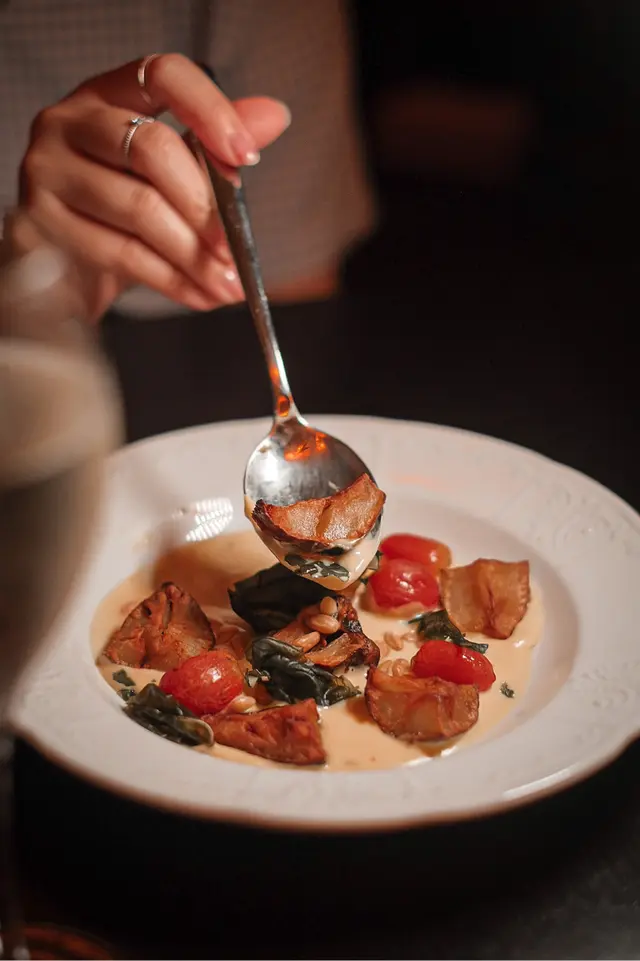 芝士加上不同配料如薯塊、小番茄和松子仁。