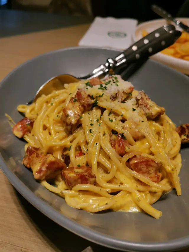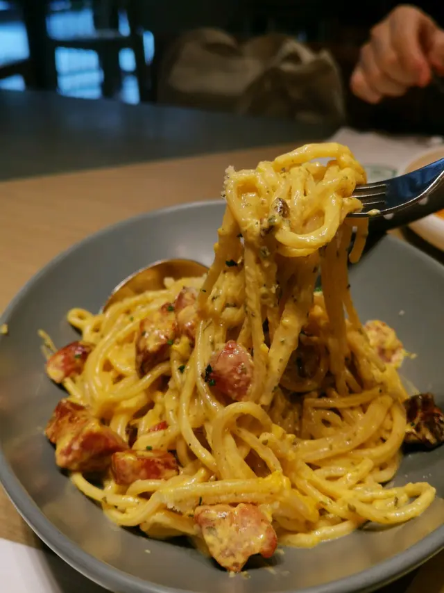 每條意粉好掛汁,意粉醬汁係比較傑嘅,切後嘅煙肉肉,果然係好香口。