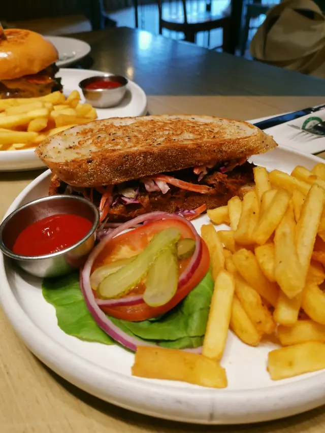 豬肉三文治pork snadwich$178 豬肉酸酸甜甜,好開胃。麵包烘到外面脆卜卜,中間嘅麵包又軟綿綿口感很好。