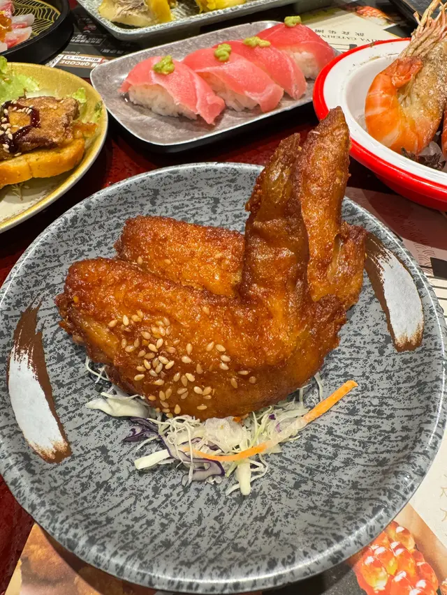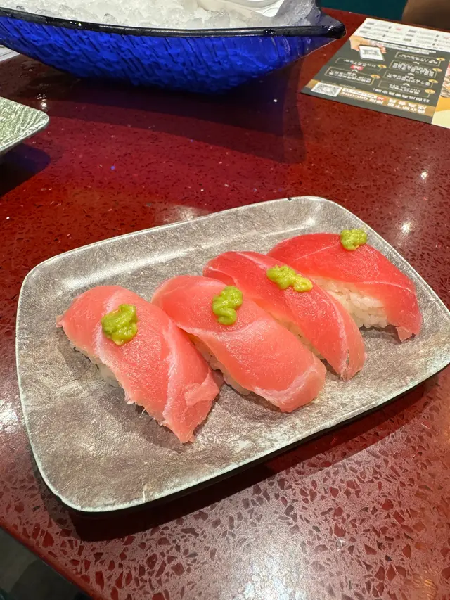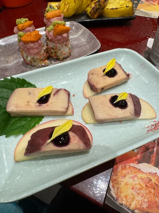 令人印象深刻的還有焦糖牛奶鵝肝壽司,香煎鵝肝外脆內滑,配上焦糖牛奶香氣,口感奢華媲美高級壽司店。據說靈感來自壽司郎的人氣款,卻多了層次的火炙香氣。