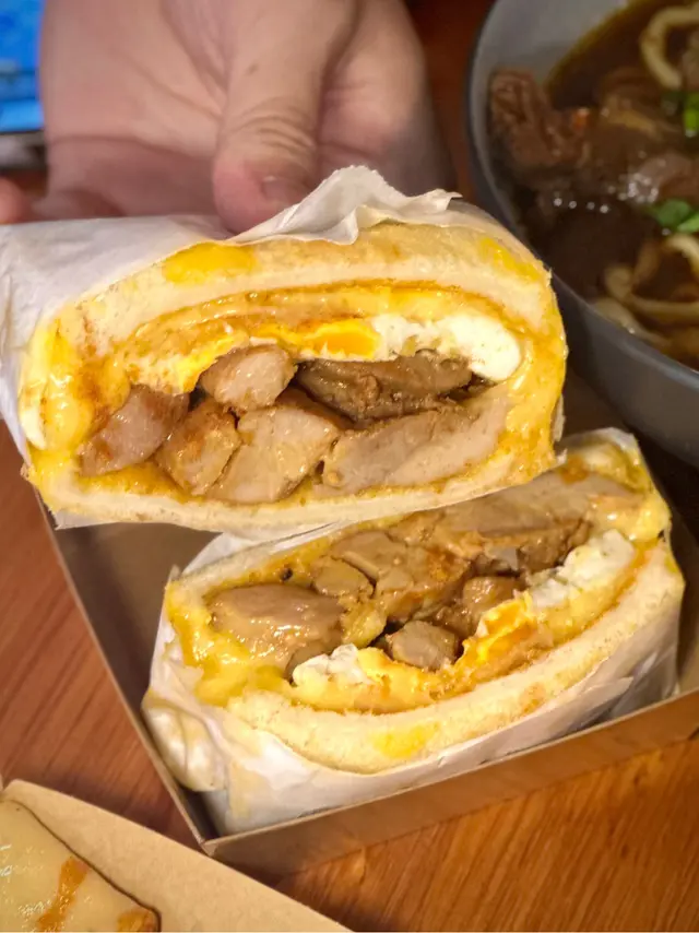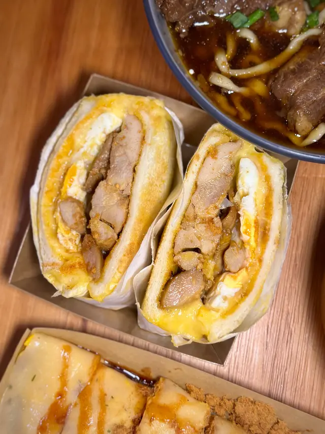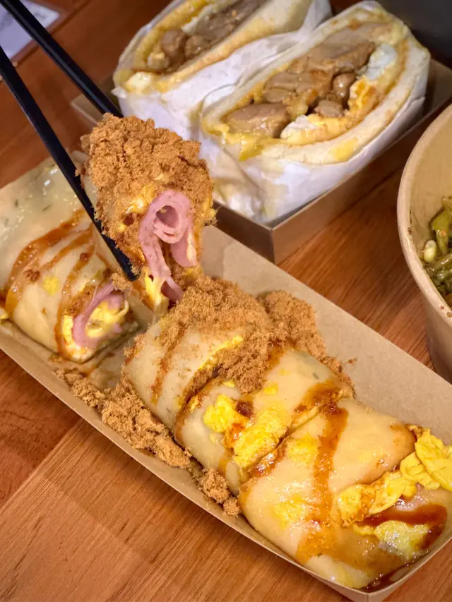 蛋餅煎得外層微脆,入面夾滿芝士、火腿、肉鬆,鹹香交錯好邪惡😈