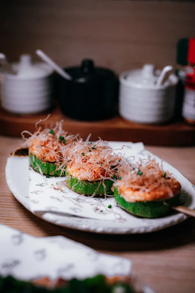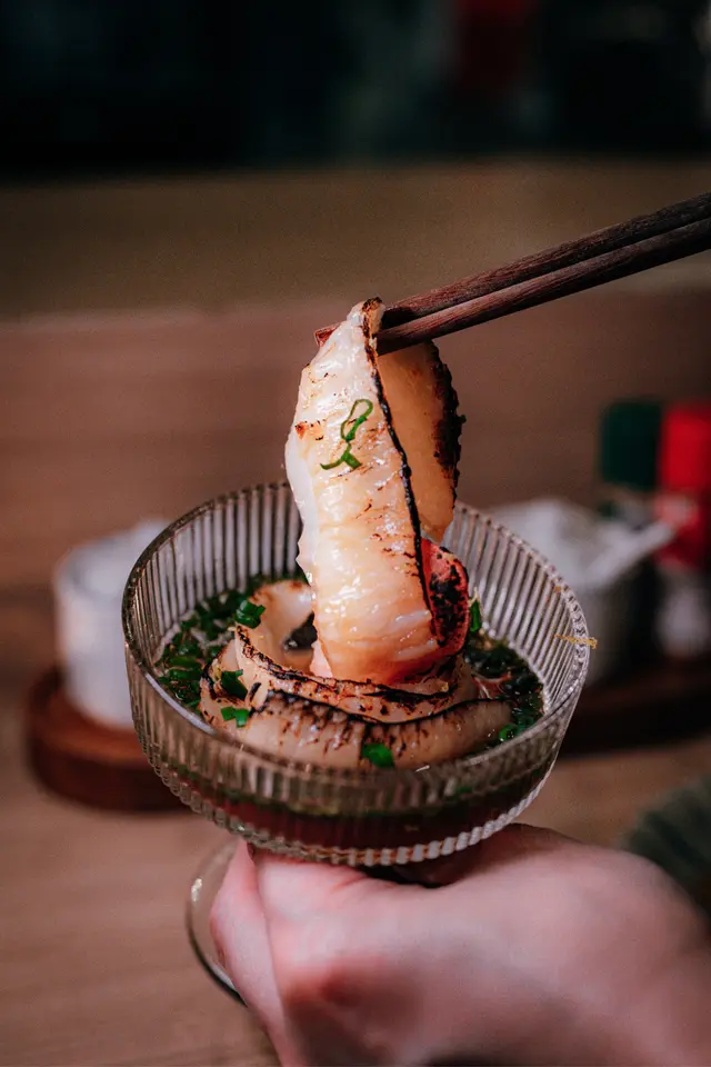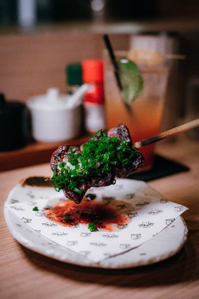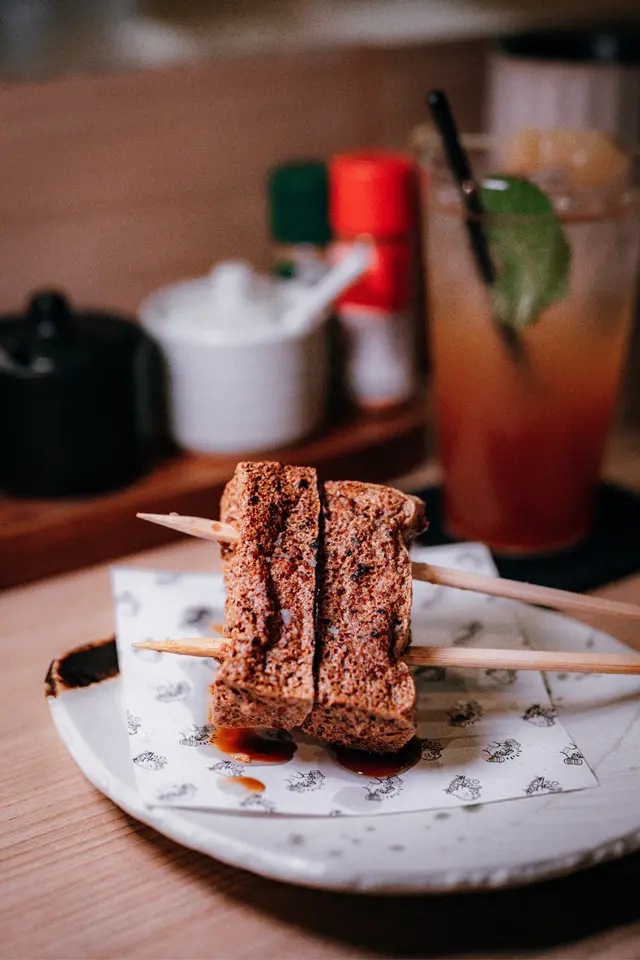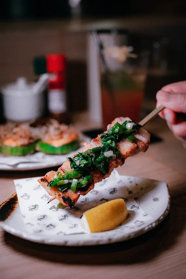 燒物月見燒牛肉的蛋黃拌勻後,肉質更顯滑嫩。串燒類別汁燒豆腐外皮酥脆,配上特調醬汁,味道不錯,是個人心水推薦為必食之選。蒜香牛肉串和鹽蔥豬五花都是經典串燒之選,火候剛好。燒明太子翠玉瓜清新解膩。