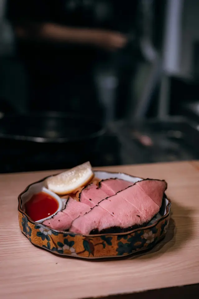 主食既明太子玉子燒口感濕潤,明太子份量頗多都幾夾。燒牛舌扒是招牌菜,人檯一碟。厚切卻依然軟腍,很值得一試。最後來碗柑桔冷素麵,為這頓豐富的晚餐畫上完美句號。