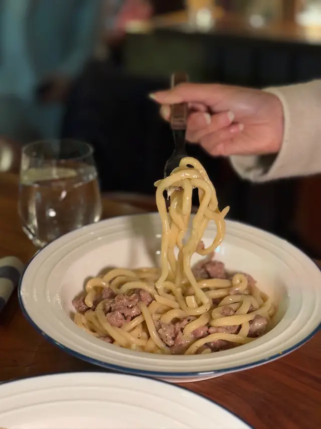 呢款手工意粉好特別好似烏冬咁,煙煙韌韌好有咬口👅食落會覺得意粉本身嘅味比較重,冇落鹽全靠芝士同Italian Sausage嘅鹹香,整體味道偏淡但係口感味道都好豐富🫶🏻