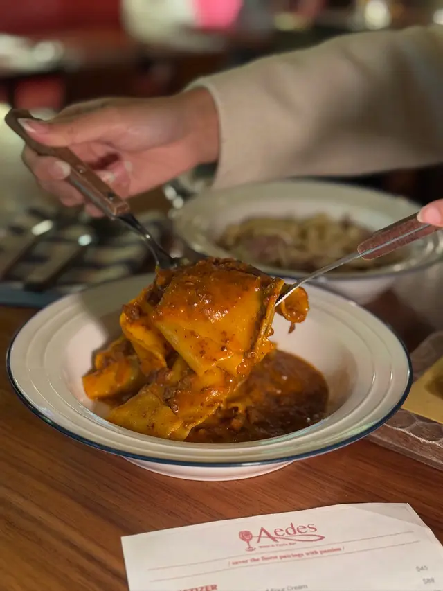 呢款係手工寬意粉,佢完全做到Al Dente嘅感覺🥹,唔會煮得太熟好有咬口,同埋佢非常之掛汁,肉醬係混合咗豬肉同埋牛肉,加上好新鮮嘅蕃茄同埋巴馬臣芝士🧀,每一啖味道都好濃郁