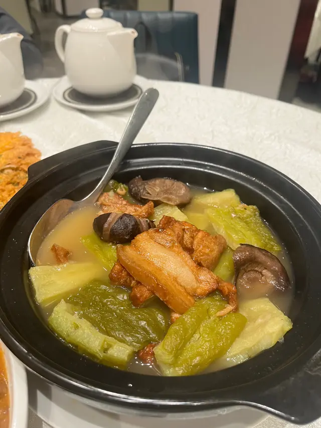 上枱熱辣辣冒哂煙,苦瓜炆至十分軟腍,完全唔苦,加上厚肉又彈牙嘅北菇同肚肉,清新又好食😆