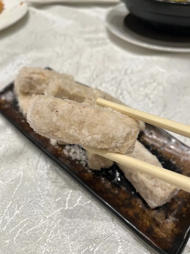 反沙芋頭作為潮州菜嘅招牌甜品,製作難度十分高,好考驗功夫😙咬落熱辣辣,外面裏滿白砂糖,咬落外脆內軟,脆口嘅砂糖配上軟綿嘅芋頭,入口啱啱好😙