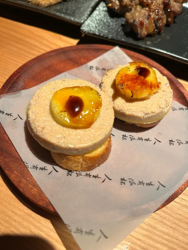 3. 焦糖菠蘿鵝肝醬多士(2件):香甜的焦糖菠蘿搭配濃郁的鵝肝醬,塗抹在酥脆多士上,口感豐富,甜鹹交融。